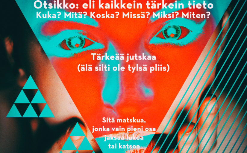 Loading the Elevenlabs Text to Speech AudioNative Player…7 supertärkeää perusjuttua tarinankerronnasta sosiaalisessa mediassa: Otsikko / eka ruutu / sekunti ratkaisee pelin – peli on raakaa ja vain antamalla kaiken heti, saat ehkä mahdollisuuden todistaa olevasi merkityksellinen. ELI kerro välittömästi mistä on kyse ja mitä sillä hyötyy. Toisto tehostaa. Ts. vielä kerran: mene heti asiaan (Sorry … Jatka artikkelin Somessa ei pärjää panttaamalla lukemista
